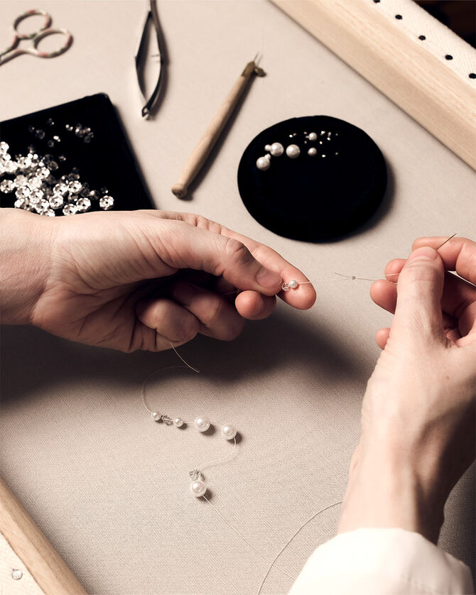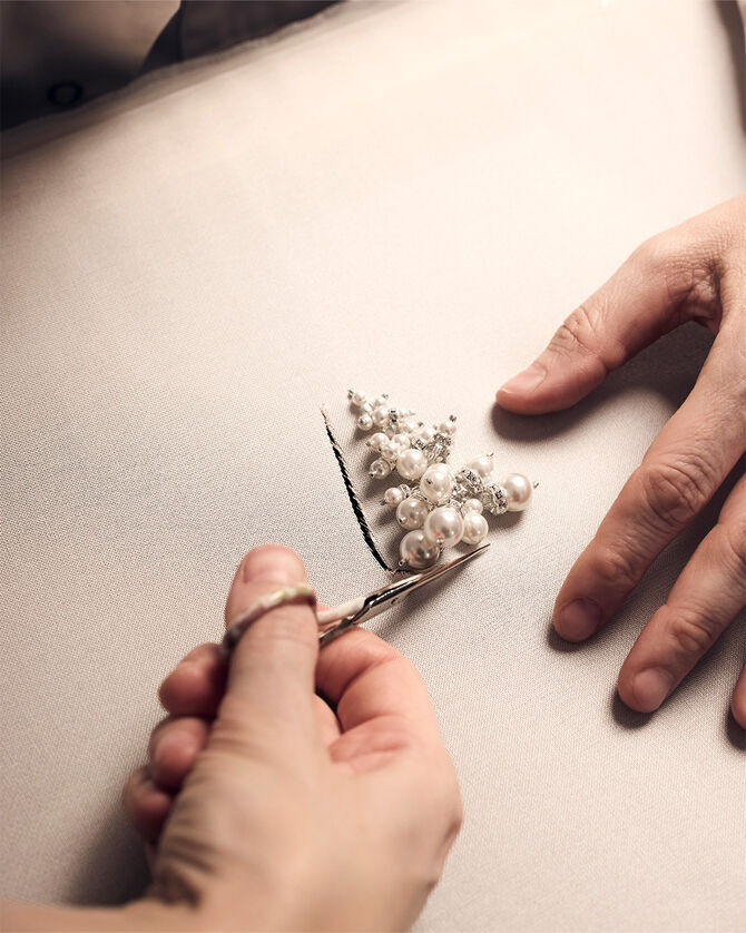 Guerlain 與刺繡藝術名家攜手合作,為非凡香水披上詩意裝飾。Vermont 工作坊於1956年起便成為巴黎市中心最享負盛名的刺繡名家,專為尊貴的高級訂製服品牌刺繡作品,並致力傳承悠久的精湛工藝。刺繡工匠就像隱形的建築師,以雙手織造奇蹟:珍珠、亮片、水晶與絲線在指尖下蛻變重生,將織物昇華為名副其實的藝術傑作。