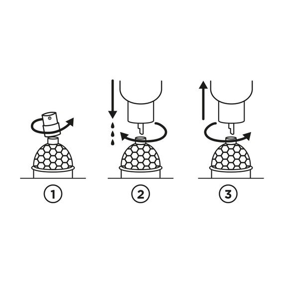 リフィル(200mL)には革新的なオートストップ機能を内蔵。本体のキャップを回し、充填するボトルのネック部分を逆さにして装着します。充填が完了すると自動的に停止する設計で、クオリティとフレッシュな香りをそのまま保ちます。〈アクア アレゴリア〉リフィルのみではご使用頂けません。リフィル対応ボトルが空になってからの詰め替えをおすすめしています。リフィル可能な75mLおよび125mL*ボトルとのみ互換性があります。