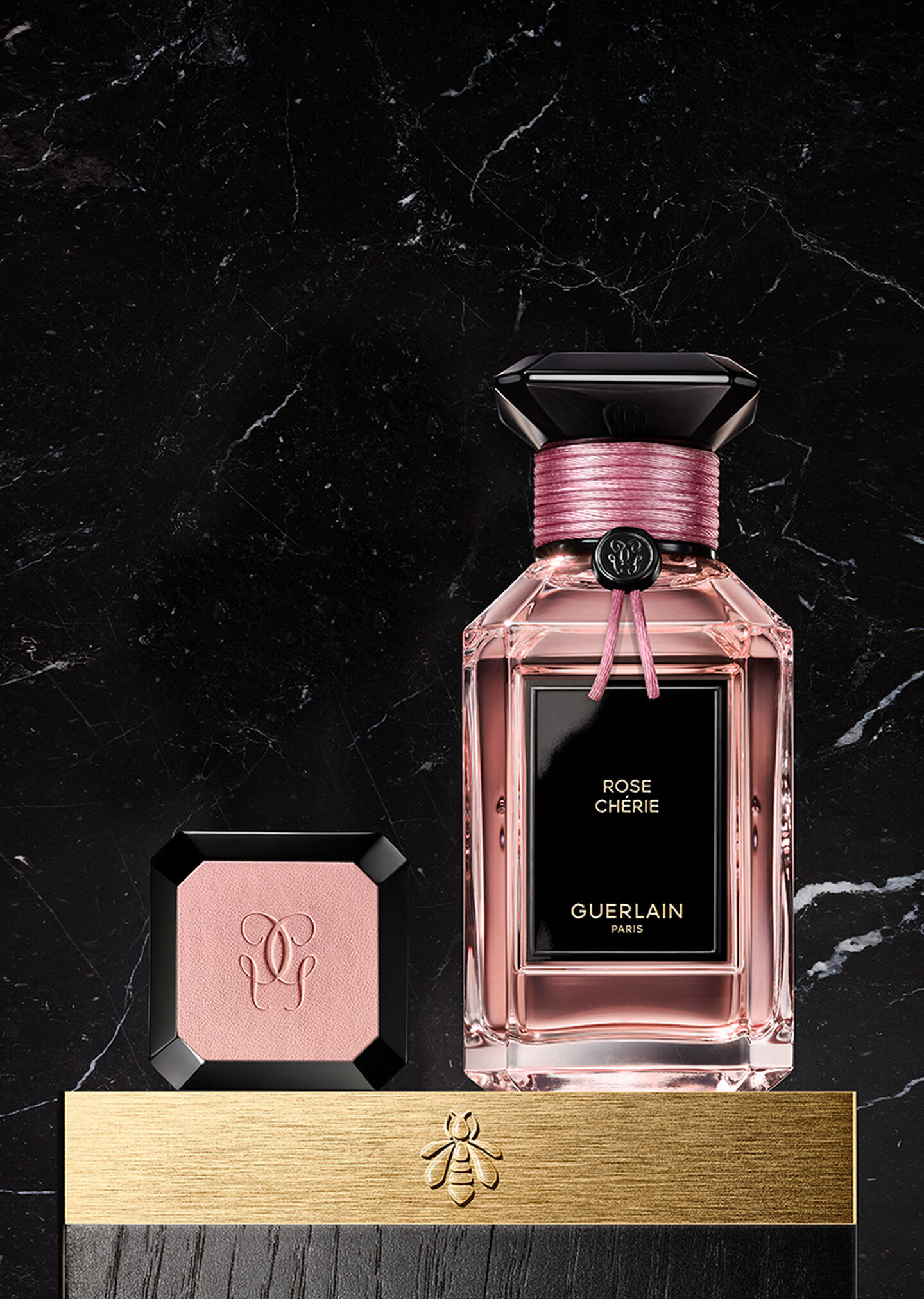 Choose the plate to be placed on top of the bottle from a myriad of beautiful materials and colours dear to the House of Guerlain.