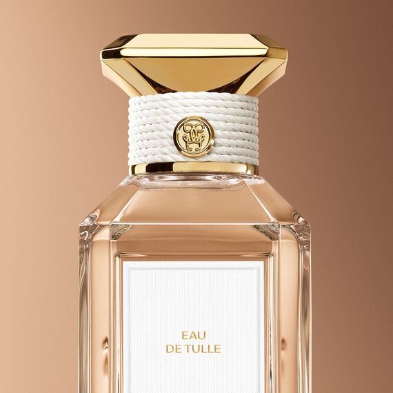 As light and delicate as a white tulle veil dancing in the breeze, Eau de Tulle caresses the skin in an irresistibly joyful scent, blending an accord of sugared almonds neroli and white musk. Inspired by the dreamlike world of weddings, this composition captures a moment of great happiness suspended in time.
